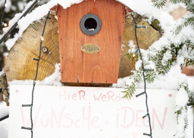 Als Ort für die gesamte Nachbarschaft gibt es den Bauwagen hinter der Kirche. Katharina und ich haben hier warme Getränke serviert bekommen und mit den beiden „Nachbarschafts-Engeln“  geplaudert. Die zwei Nachbarschafts-Engel sorgen für ein buntes Angebot. Hier versammeln sich Hobby-Gruppen, Kindergeburtstage oder die Nachbarschaft auf einen spontanen Schnack.